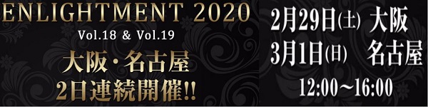 展示販売イベントENLIGHTMENTの次回開催日程が決定しました。お陰様でとうとう記念すべき20回目。ありがとうございます。※※新型コロナウイルスの感染対策の為、ご協力の程よろしくお願い致します。※スタッフはマスク着用での対応となります。※ご来場時はマスクの着用をお願い致します。※入口にアルコール消毒液を設置致しますので、ご協力をお願い致します。※ドアノブ、椅子、テーブル等を1時間随時除菌致します。※出来る限りお一人様でのご来場をお願い致します。※来場はお一人様30分程度とさせて頂き、状況により人数制限をさせて頂く場合がございます。(その場合、時間をずらしてのご来場をお願いします。)