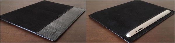 バッグの中に入れるiPADケースは単体でも持ち歩けるようにバッグとは別アイテムとして。表は長財布とスマホ、裏はiPADを入れる想定でポケットを作ってあります。iPADの画面保護という観点から剛性のあるブライドルをスウェードで裏張りして中心に配置して、厚手のベロアでくるむようにしてポケットを作ってあります。ベロアは一枚革なのでモノを入れると革が伸びてフィットしていくという考えで作りました。ご注文ありがとうございました。