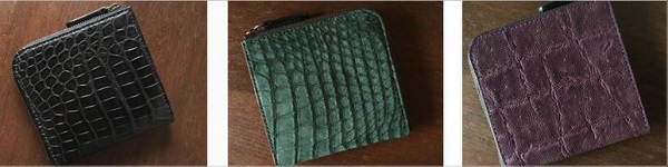 LIZ(LongZIp)のショートバージョンとして開発したのが SIZ(ShortZIp)です。斑の入りの美しいポロサス、優しい印象のヌバッククロコ、個性的なエレファントは美しい紫のイタリアンヌメとあわせました。。
