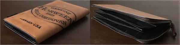 「商品が届きました。とてもいいものです。」外装はHorween社シェルコードバンのバーボン、内装はブライドルのキャメルで製作したSIZ(Short ZIp)。このモデルはLIZ(Long ZIp)のショートバージョンとして開発しました。似たようなサイズでPOCKETもあるのですが、中を仕切って使いたいというご要望をいくつも頂いたためです。お客様の中でコインは入れずコンパクトな札、カード入れとして使いますという方がいて、コインを沢山入れるモデルではないのでしっくりくる割り切りだなと思いました。ご注文ありがとうございました。